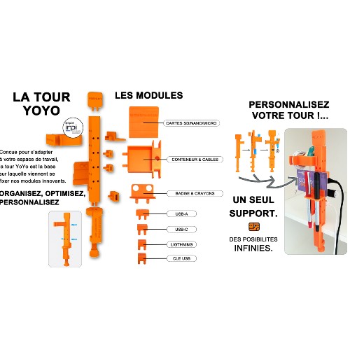 " Tout a commencé avec une idée : la Tour YOYO " C’est à partir de cette tour multifonctions, conçue pour organiser et optimiser l’espace de travail, qu’est née toute la gamme de produits Yoyo. En imaginant un support central modulable, nous avons ouvert la voie à une infinité de solutions personnalisables pour le quotidien. Vous pouvez acquérir la Tour Yoyo avec ses modules autonomes pour composer la solution de rangement qui vous ressemble.