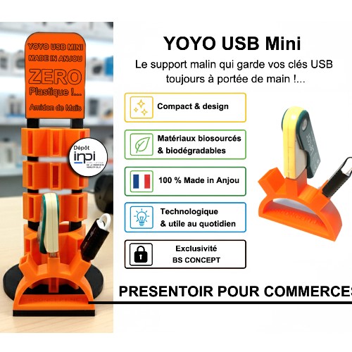 Le YOYO USB Mini est le support malin et pratique qui met fin au désordre de votre bureau et aux clés USB perdues. Conçu pour les professionnels, il est idéal pour équiper vos équipes et booster votre communication d’entreprise.