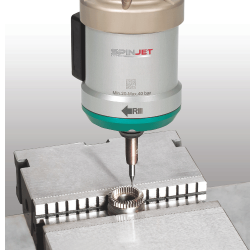 • Les outils ne tournent qu’avec la pression du liquide de refroidissement et la broche de la machine est inactive lorsque SpinJet est en marche