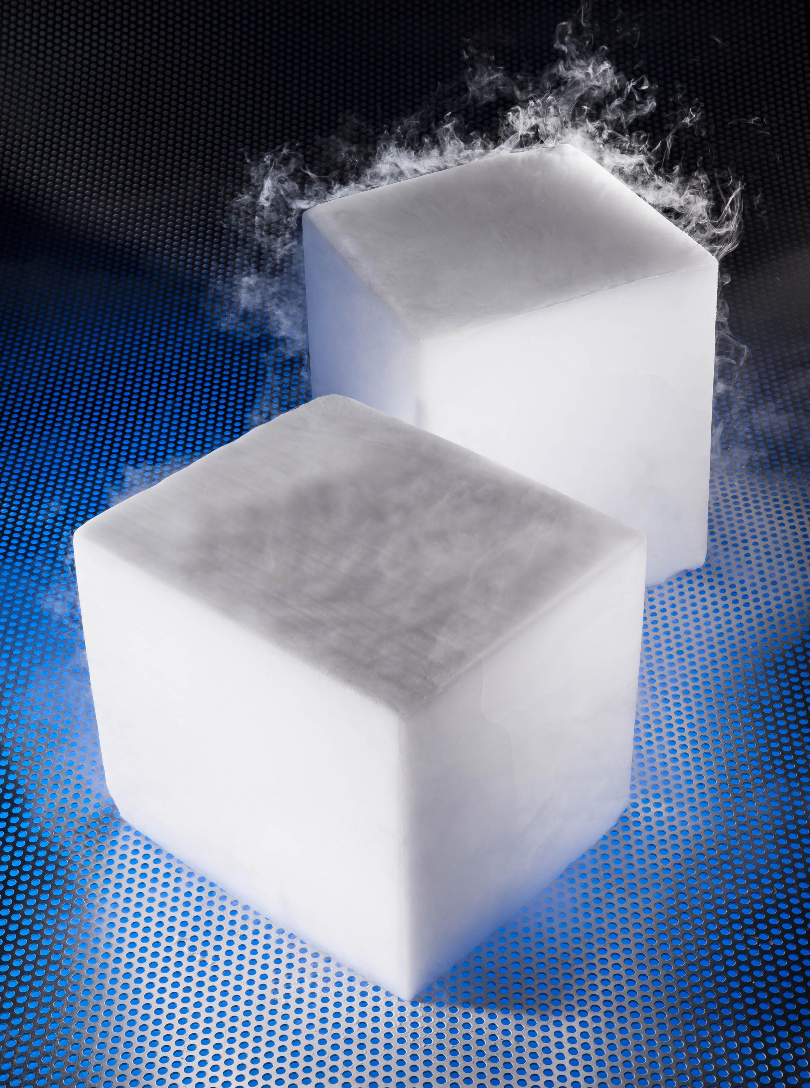 Glace carbonique très haute densité fabriquée sous forme de blocs de 7 kg, non emballée spécial Nettoyage cryogénique. Les blocs de glace sèche sont spécialement dimensionnés pour être utilisés dans les machine Cold Jet I3 Microclean. Les blocs de carboglace se conservent mieux que les pelettes ce qui permet de réduire la fréquence des livraisons.