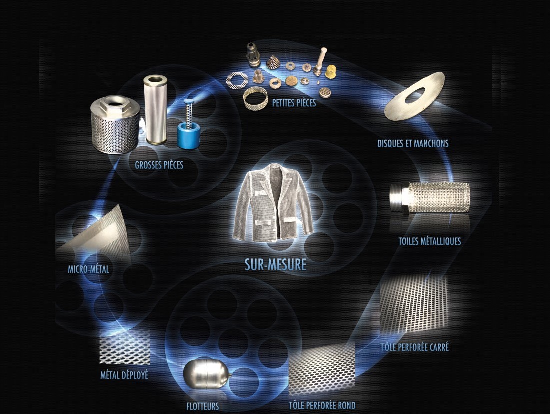 Les gammes de produits sont très larges : toiles métalliques, tôles perforées, métal déployé, tricots métalliques, crépines, tamis, paniers, médias filtrants...