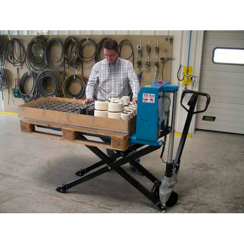 Le transpalette haute levée est conçu pour le déplacement de palettes au sol.
